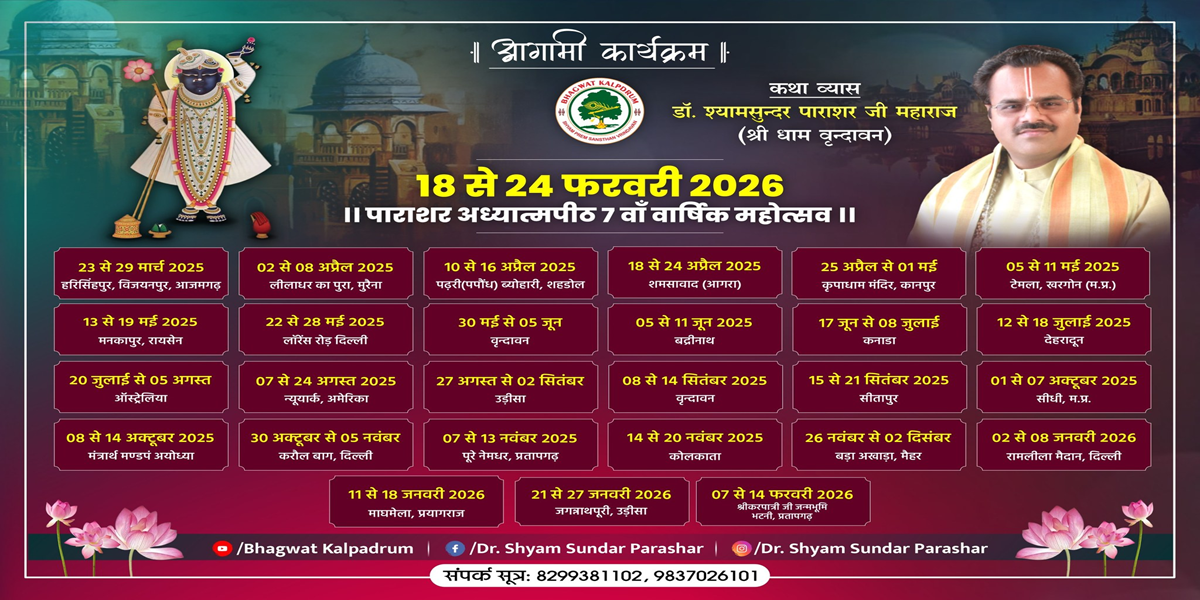 मध्य प्रदेश ग्वालियर में माता पार्वती नदी के पावन तट पर नगर भितरवार में श्री शास्त्री जी का जन्म 8 जून 1967 तदनुसार वट् अमावस को एक सद्गृहस्थ परिवार में हुआ। आपने श्रीधाम वृन्दावन में व्याकरण वेद शास्त्रों सहित श्रीमद्भागवत का अध्ययन वेदमूर्ति श्री राजवंशी जी द्विवेदी द्वारा श्री धर्म सङ्ग संस्कृत विद्यालय रमणरेती वृन्दावन में किया, जो धर्मसम्राट श्री स्वामी करपात्री जी द्वारा प्रतिष्ठापित है।